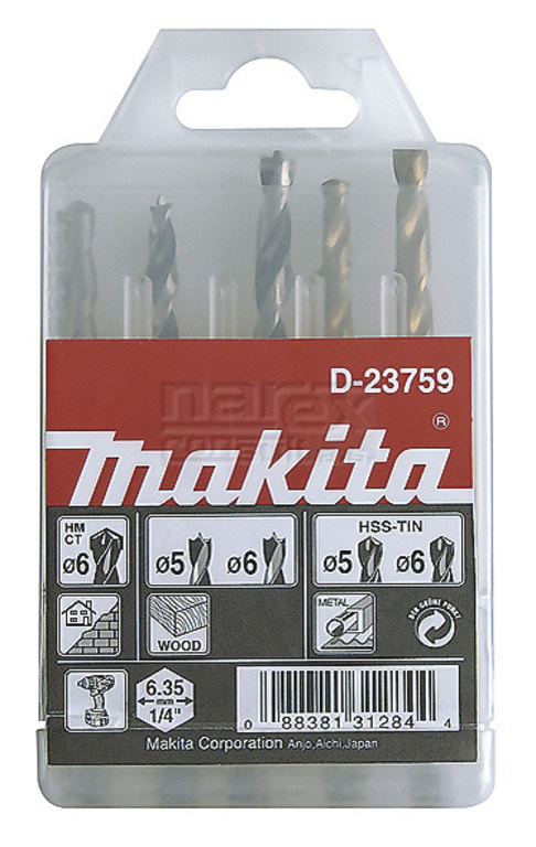 Sada vrtacích bitů 1/4" 5ks Makita D-23759do 7-14 dnů273 Kč/ ks226 Kč bez DPH